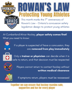 At Cumberland Minor Hockey, player safety isn’t just a rule — it’s a responsibility we all share. Concussions are serious injuries, and every player, parent, and coach plays a vital role in prevention and recovery.