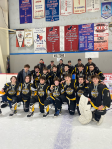 The game winning goal at 0:22 min of the second period, scored by #14, Mathieu Albert, and, assisted by #8 defenceman Dylan Murray and #1, goalie Vincent Richardson brought home the gold medal!